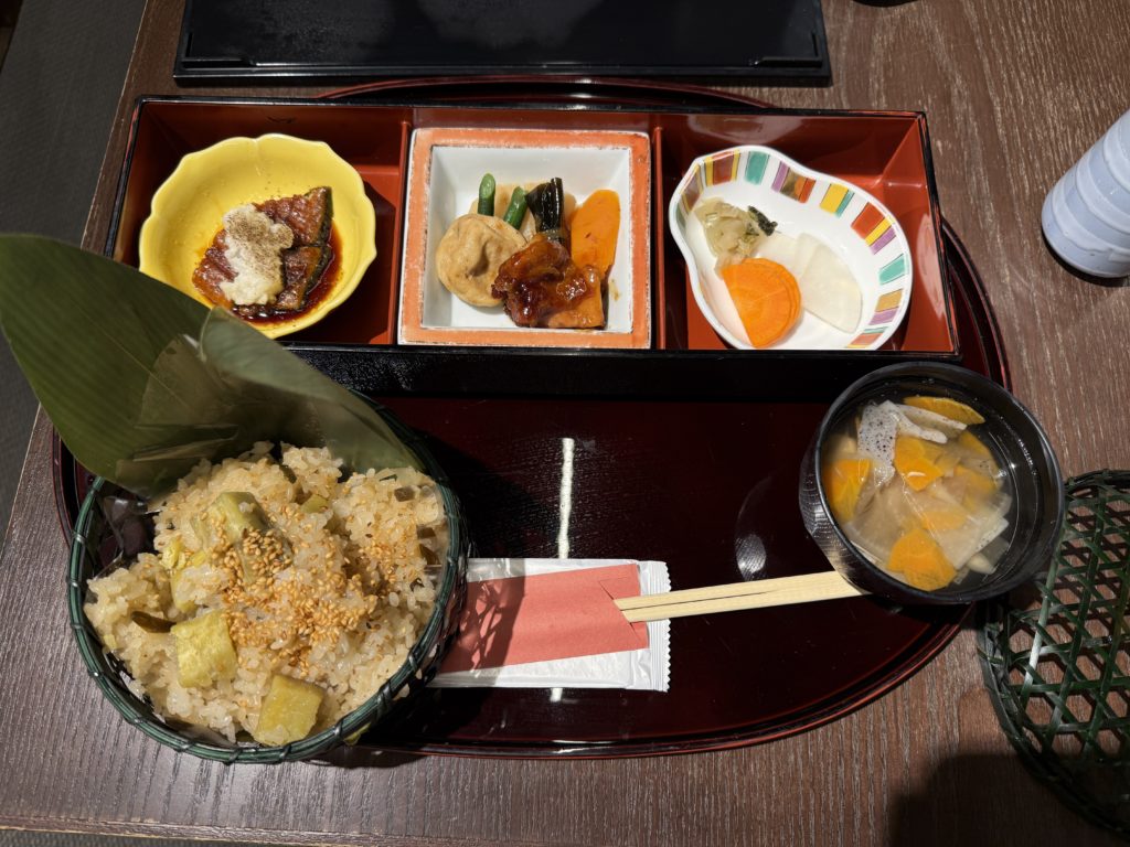 さつまいもを使ったおこわ御膳は、鰻や鶏の照り焼きなど副菜もついており、リーズナブルで見た目も可愛く、何といっても味がとても好みでした。これで、1350円は都内ではなかなかないと思います。