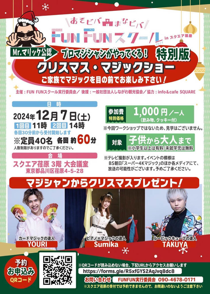 • 概要: プロのマジシャンによるクリスマス特別マジックショーが開催されます。