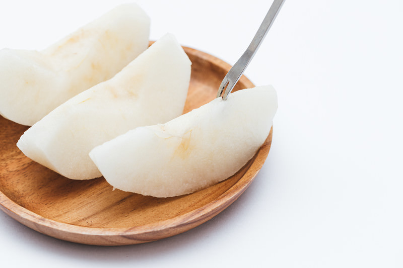 梨→ 渇きをいやし潤し熱をしずめ痰をとる。咳を止める。
