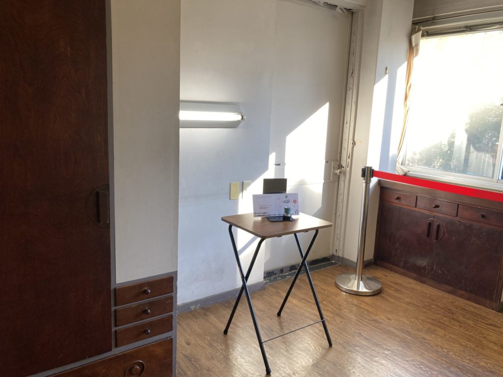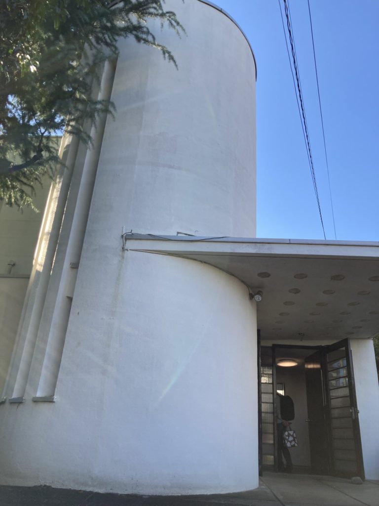 今は白のペンキ塗りだけど当時はコンクリート打ちっぱなしだったそう。
